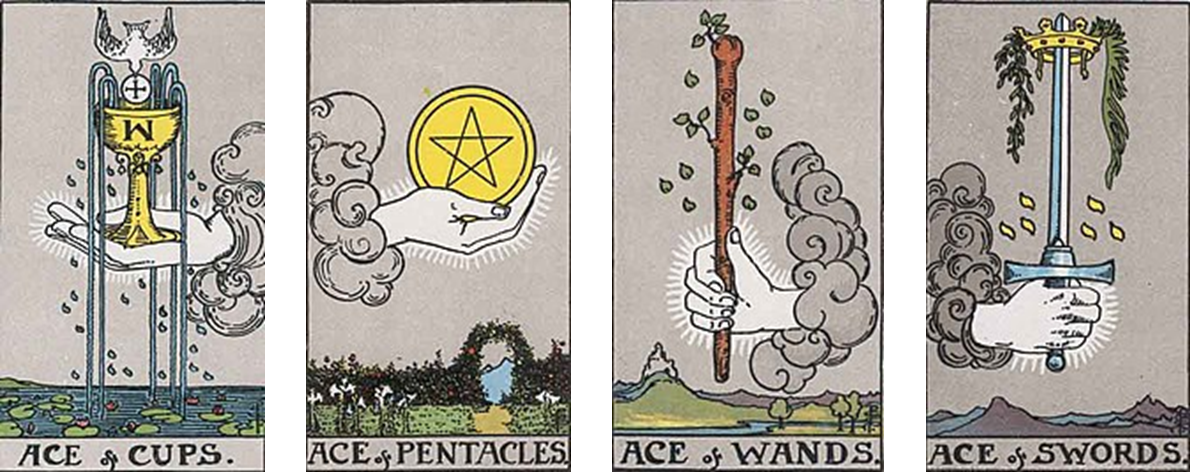 다만, 마이너 아르카나는 이러한 4원소 각각의 의미와 수비학을 파악하는 것도 중요하지만, 보다 직관적으로 회화에 그 의미가 드러나는 것을 일차로 이해한 후, 그 안에 숨겨진 뜻을 파악하는 것이기 때문에 회화에서 오는 첫 인상에 먼저 주목해야한다는 것을 잊지 말자.