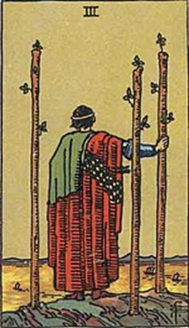 쓰리(Three, 3)은 최초의 완성을 의미한다. 완결성 혹은 전체성을 상징하기도 하며, 확실한 의미를 나타내는 카드의 편에 속한다.