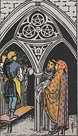 c.f.) 펜타클 3번은 타로 리더의 성향에 따라서 '다른 펜타클들과 다르게 비어있는 펜타클의 모습'이라는 측면에서 접근하여 '미완', '완성 직전의 단계', '한걸음 모자란 실패' 등으로 해석하기도 한다. 다만 일반적으로 수비학, 그리고 세 사람의 협력 모습을 고려시 이러한 해석에는 근거가 부족하다고 볼 수 있다.
