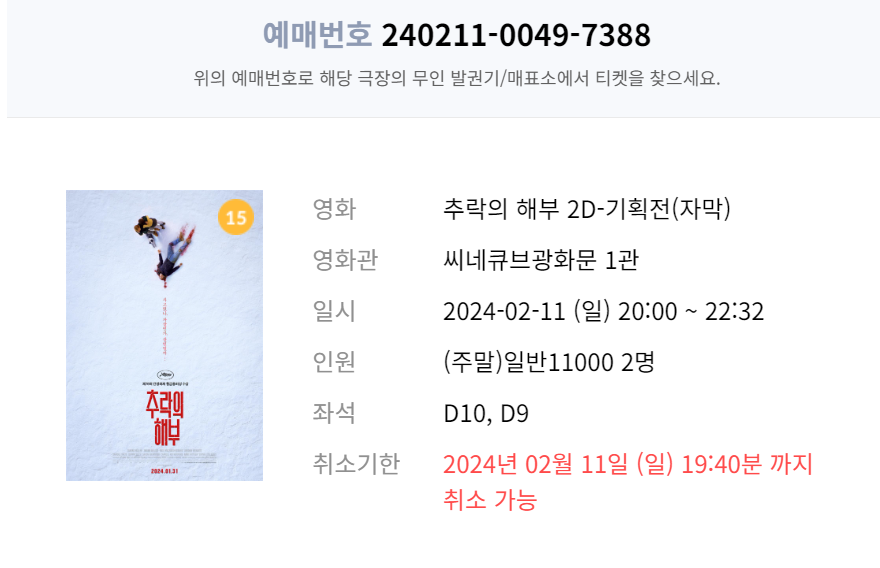 2024.02.11 광화문 시네큐브에서 관람한 '추락의 해부' 리뷰이다.