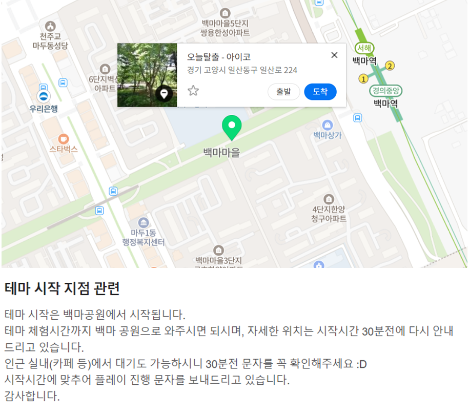 특정 장소에서 시작해서 각종 지령을 받고(사진 힌트라던가, 암호를 푼다던가) 이동해서 진짜 방탈출 시작 장소로 이동하는 방식 역시 이전에도 꽤나 보았지만, 매번 다 괜찮게 즐겼던 경험이 있기에 두근대는 마음으로 참여.
