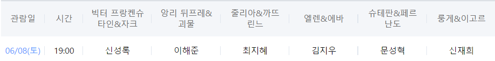 내가 관람한 캐스팅 보드는 아래와 같았다.