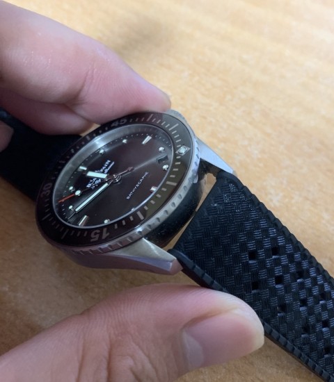 300m 방수 + 씨쓰루백시계인데 두께가 11mm밖에 안되고 여기에 적당히 꺾인 러그와 평평한 케이스백, 그리고 바라쿠다 트로픽 러버가 더해지니 미친 착용감을 선사했다.