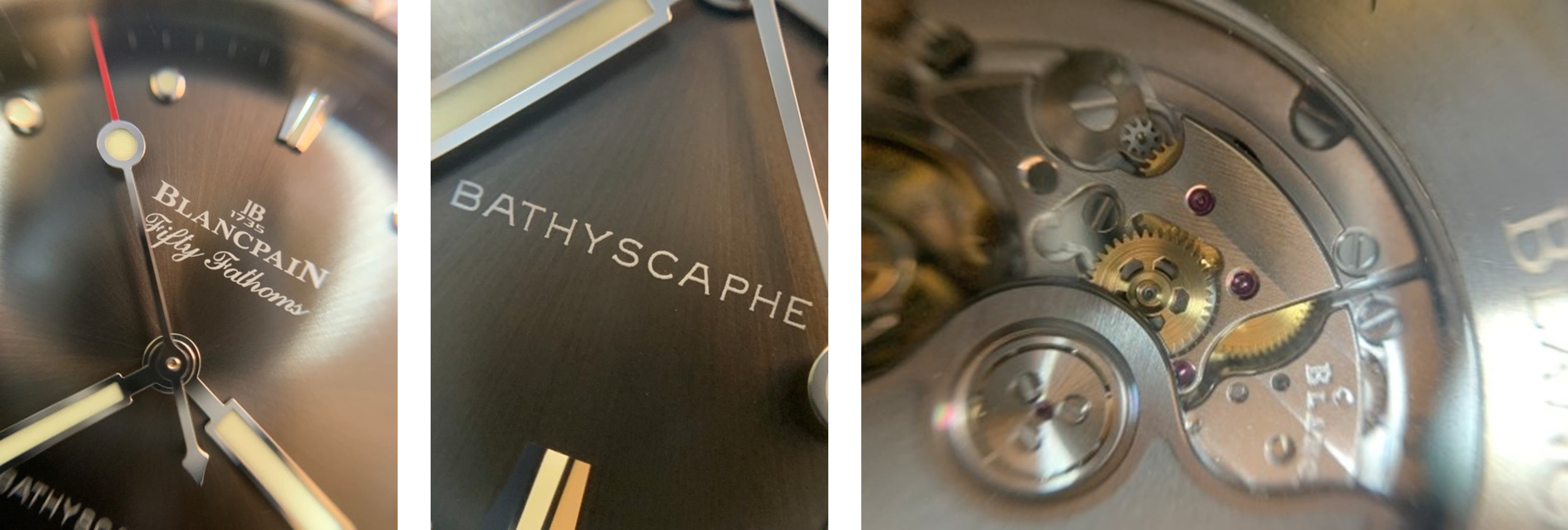 물론 빅5 드레스워치나 그랜드세이코 / 더 시티즌 등 브랜드에서 보여주는 마감과 직접적인 비교를 하기에는 무리가 있다. 다만 롤렉스, 오메가, IWC 등의 프레스티지 브랜드, 나아가 소위 하이엔드 브랜드라 불리는 브랜드의 엔트리 시계급에서는 명성이 무색해지는 마감미흡, 단차, 유격 등을 보이는 경우가 왕왕 있는데 적어도 블랑팡 바티스카프는 그런면에서는 면죄부를 받을 수 있는 모델이라 할 수 있다. 핸즈홀 중심 불일치, 프린팅글자 및 초침도색 번짐 등 미스도 보이지 않았고, 뒷백에서도 기본적인 제네바스트라이프와 앵글라쥬 처리에서 흠잡을 곳은 없었다. 그야말로 기본에 충실한 모델