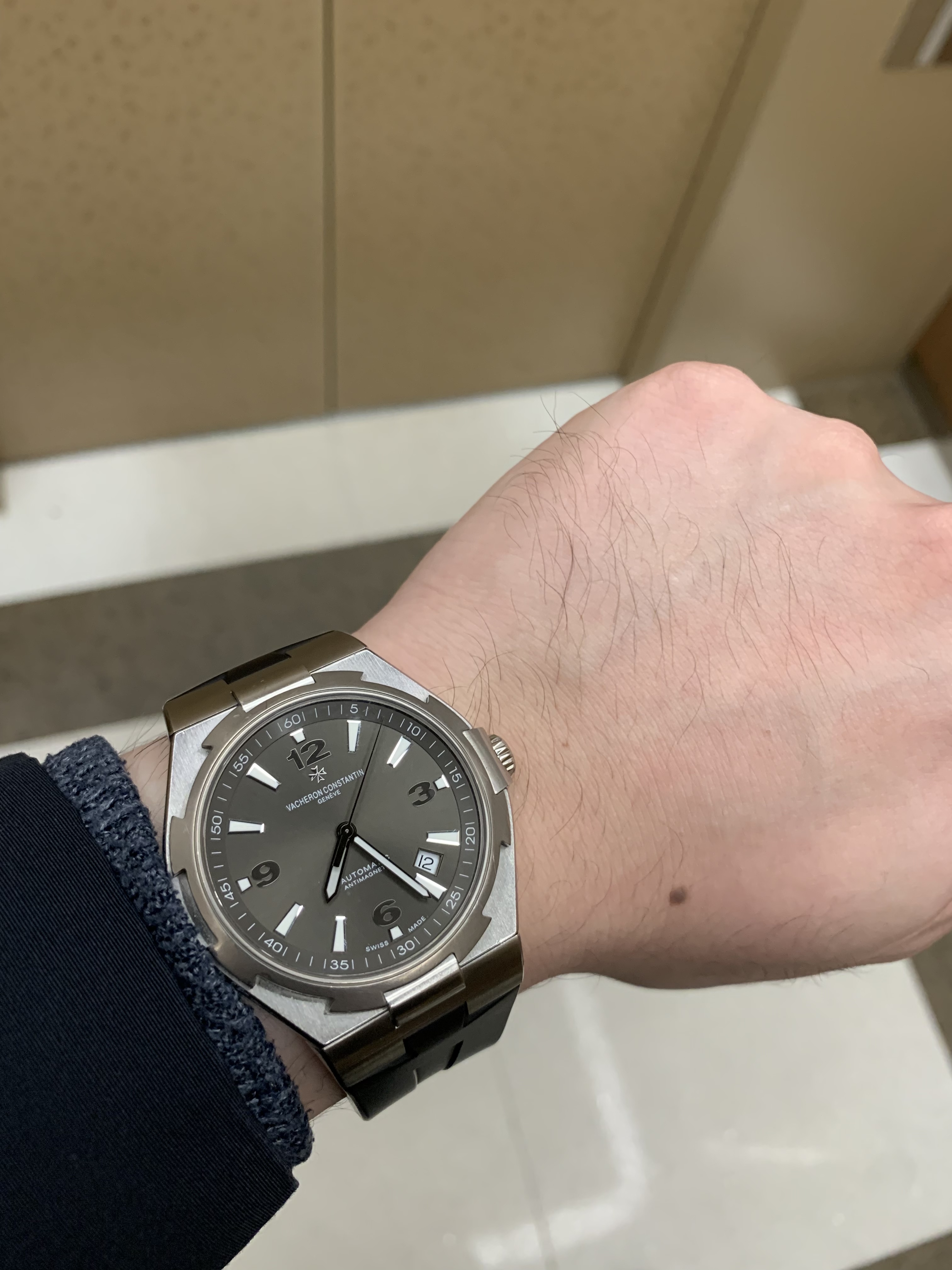 오버시즈도 나의 기추리스트에 올린적은 있었지만 현행 3세대는 너무 가격대가 비쌌고(+ 두께 및 크기도 증가했고), 기존 2세대는 가로 스트라이프 무늬가 못생겨보여서 패스했었는데, 이 모델은 처음 보는 신선함이 있었다. 기존 2세대의 가로무늬와 다르게 은은한 그레이 썬레이가 들어갔고, 티타늄 소재의 베젤의 독특한 느낌, 그리고 3-6-9-12 아라비안 인덱스까지 더해지니 그 매력이 더욱 크게 다가왔다. 당시 중고가로는 바쉐론 콘스탄틴의 오버시즈라는 이름치고는 상당히 저렴한 가격에 구매할 수 있었기에 '롤렉스보다 바쉐론이 더 상위 브랜드인데, 아라비안인덱스 느낌도 비슷하고하니 익스플로러1 상위호환 시계를 이가격에 산다면 완전 럭키비키 아니냐'라는 생각에 구매했던 것 같다.
