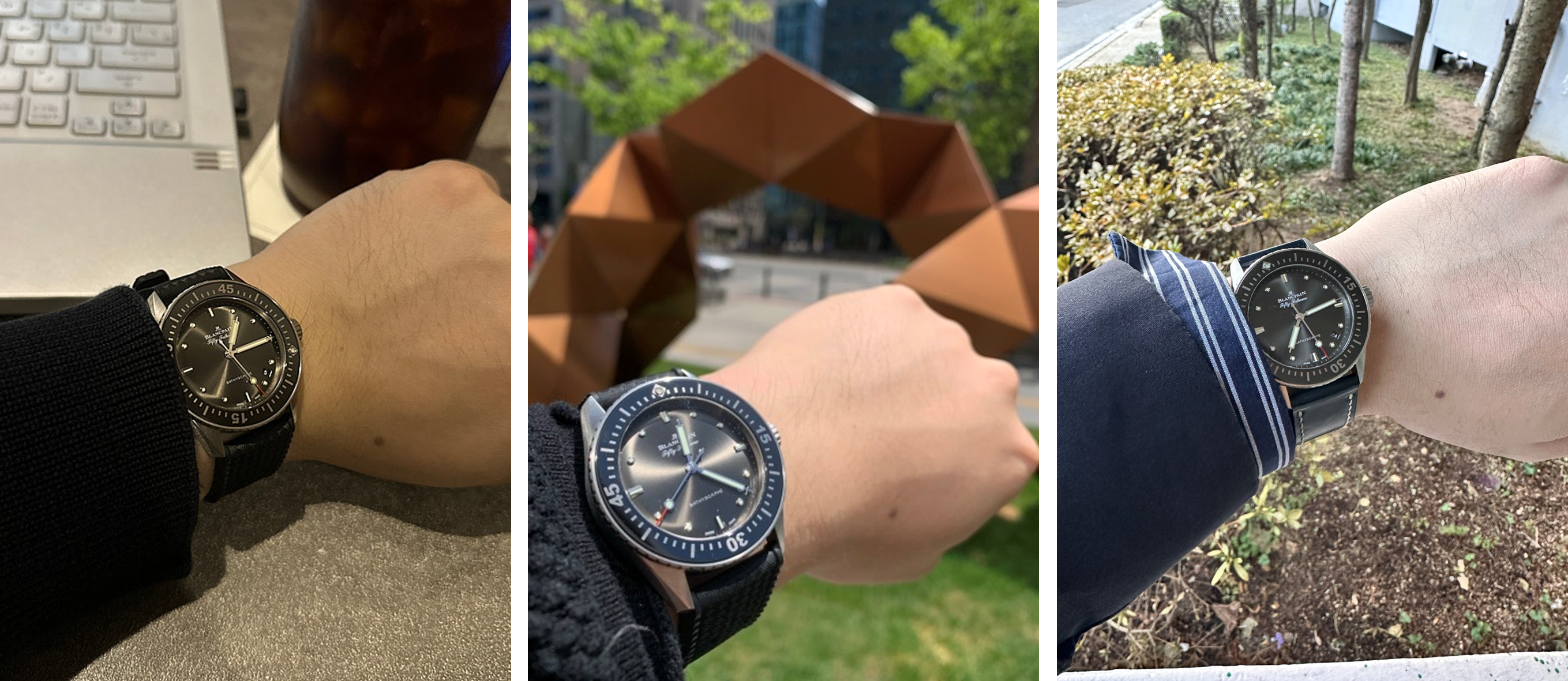 나의 아픈손가락이자, 나의 전천후 시계인 블랑팡 바티스카프이다. 왜 아픈 손가락인지는 아래의 리뷰글 참조