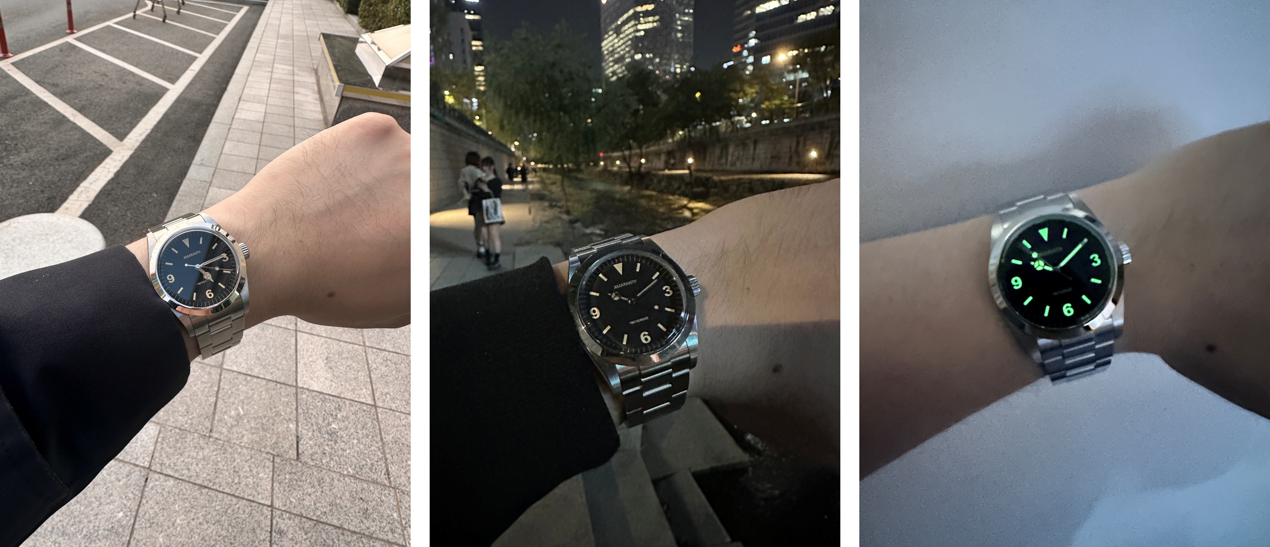 오히려 내가 가장 크게 느낀 단점은, 결국은 오마주 시계의 느낌이 너무 강하게 느껴진다는 것. 부정할 것도 없이, 이 시계는 전설적인 롤렉스 익스플로러1의 첫번째 버전인 1963 모델에 시계에 기반하고 있다. 물론 문구와 색상 등 일부 커스텀한게 있을지언정, 그 베이스 DNA가 어디로 가는 것이 아니기 때문에 차고다니면 다닐수록 원본 익스플로러1을 가지고 싶다는 생각이 강하게 들게 되었다는 것. 익스 1이 구할려면 못구하는 그런 시계는 아니지만, 막상 이런 상황에서 익스 1을 구하게 되면 이 커스텀 시계를 안차게 되는 나의 미래가 너무 훤히 보이기에 이도저도 못하게 되었다는게 참 아이러니한 상황.