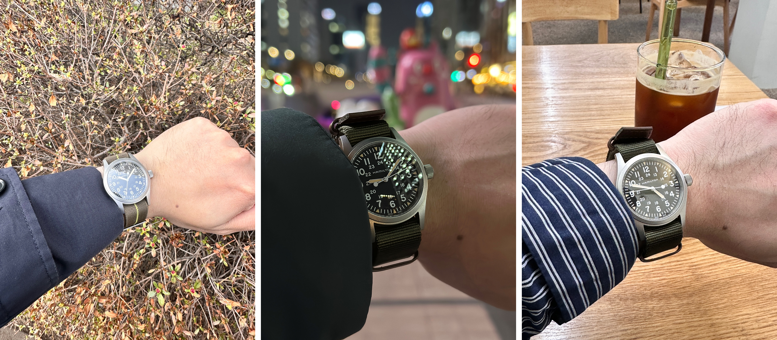 B-Uhr나 더티더즌 같은 고가류부터 알리발 값싼 시계까지 스펙트럼이 다양한 밀리터리 시계의 시장에서 십수년간 그 자리를 확고히 한 것에는 분명한 이유가 있음을 알 수 있던 시계. 적절한 해리티지와 디자인, 대기업의 기술력과 AS, 그리고 100 언더라는 적절한 가격까지. 밀리터리 시계에 관심이 있는 당신, 해밀턴 카키필드 메카니컬 한번 드셔볼라우?