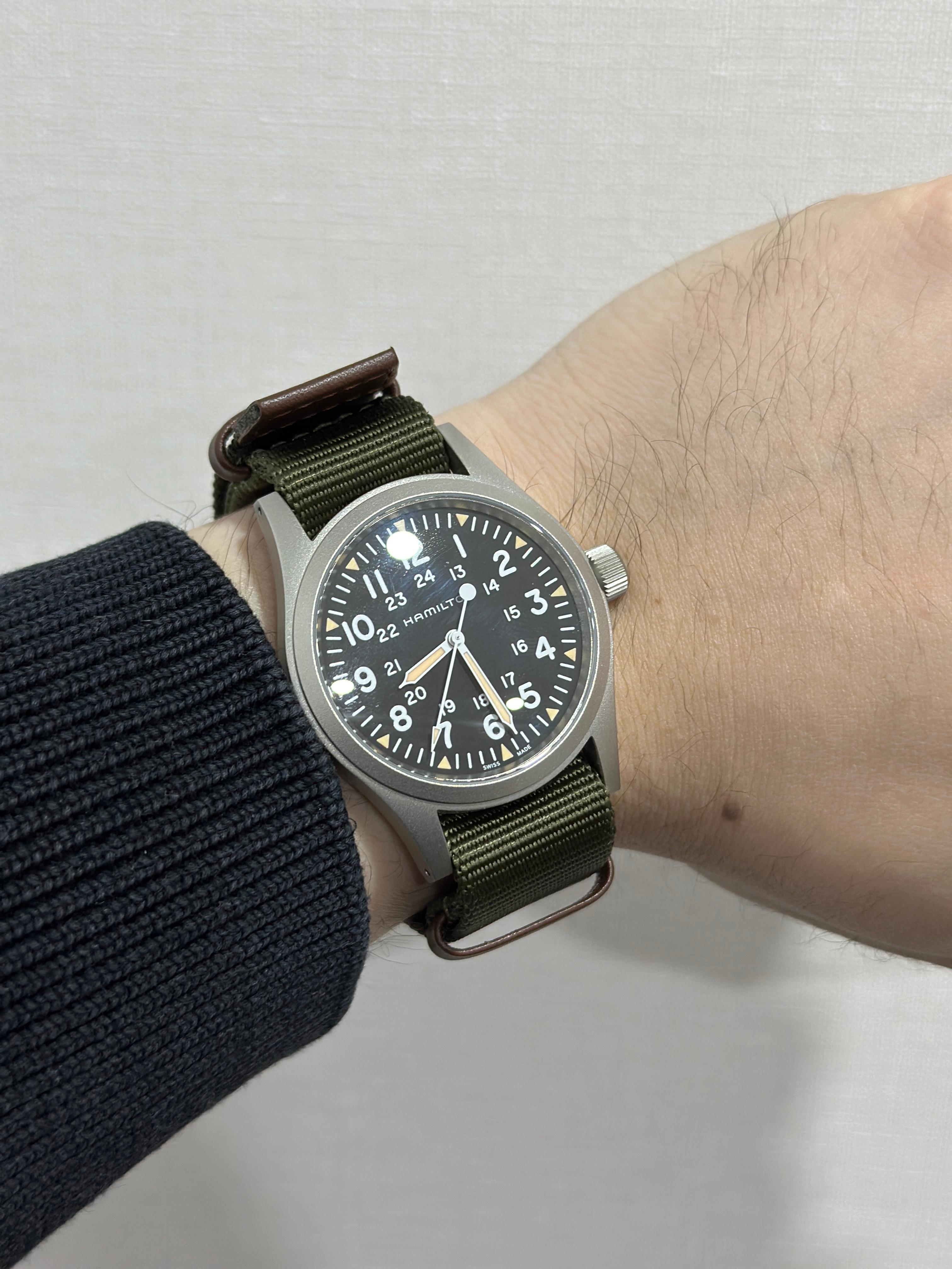 해밀턴의 베스트셀러이자, 스테디셀러인 모델인 카키필드 메카니컬이었기에 홍대병이 있는 나는 오랜기간동안 피해왔지만... 국가의 부름이라는 이벤트가 다가오니 결국 찾게 되어 구매까지 이어졌다.