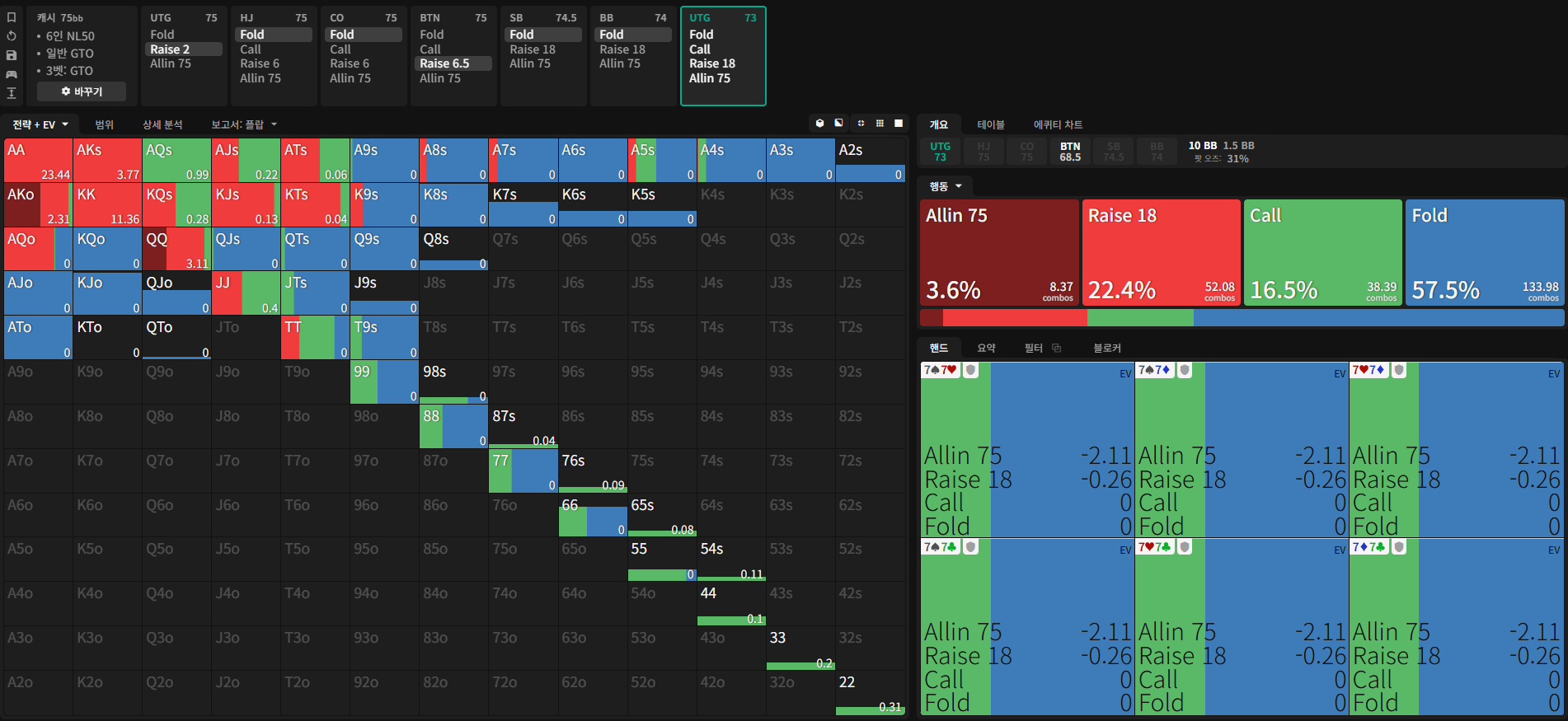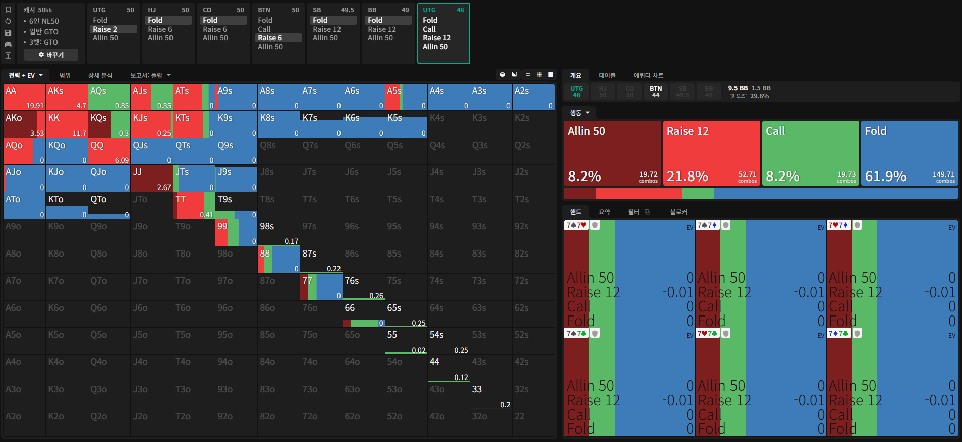 이 상황에서의 GTO 전략은 아래와 같다.