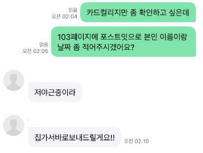 그리고 약 4시간이 지난 후 요청한 서적의 정확한 페이지와 본인 이름 및 거래 날짜가 정확히 적힌 인증이 도착했다. 깨알같이 마술카드의 덱 커버에 이름과 날짜를 적어서 인증한 그의 모습을 보며 '아, 마술인이 맞구나!'라는 생각을 하게 되고 안심을 하였다.