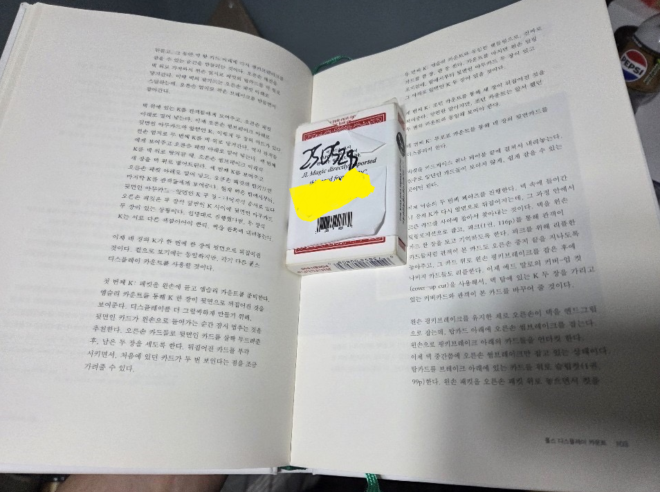 그리고 약 4시간이 지난 후 요청한 서적의 정확한 페이지와 본인 이름 및 거래 날짜가 정확히 적힌 인증이 도착했다. 깨알같이 마술카드의 덱 커버에 이름과 날짜를 적어서 인증한 그의 모습을 보며 '아, 마술인이 맞구나!'라는 생각을 하게 되고 안심을 하였다.