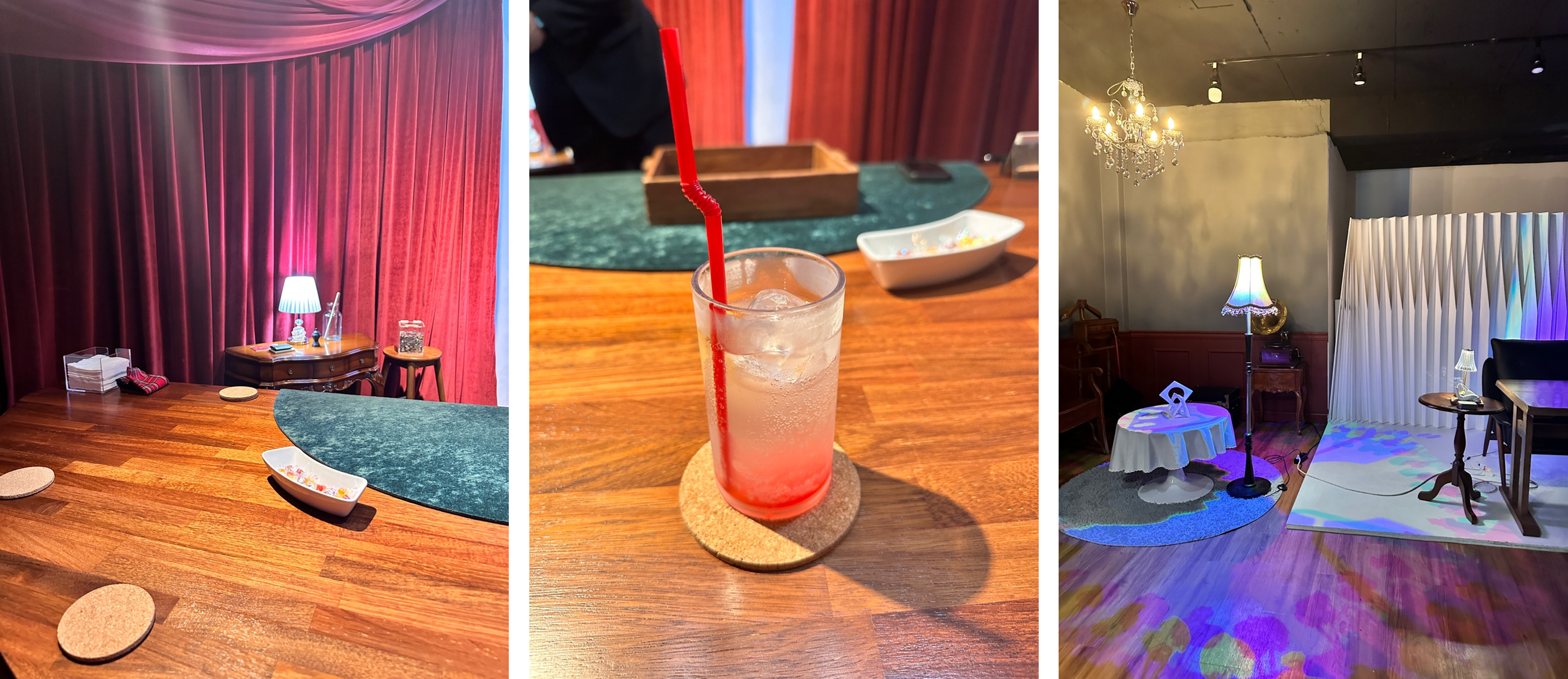 잘 꾸며진 형태의 공간이 관객을 반겨준다. 이전 비포선셋의 무대가 중세 귀족들의 다락방 같은 느낌이었다면, 이 곳은 20세기 초 마술공연장을 보러 온 느낌이랄까. 시원한 에어컨과 더불어 웰컴 드링크를 마시고 있다보면 공연이 시작된다.