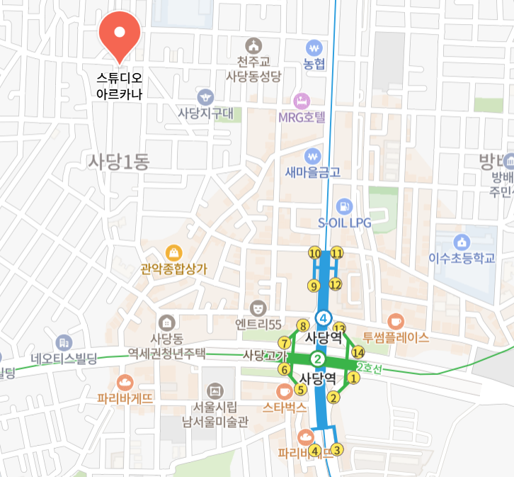 알 사람은 다 알겠지만 서울의 이름난 마술샵 / 마술공연장 / 마술학원 등이 이 사당-이수 라인에 밀집되어 있다. 나도 이전에 마술 오프라인 행사 등으로 여러번 방문한적이 있는 곳.