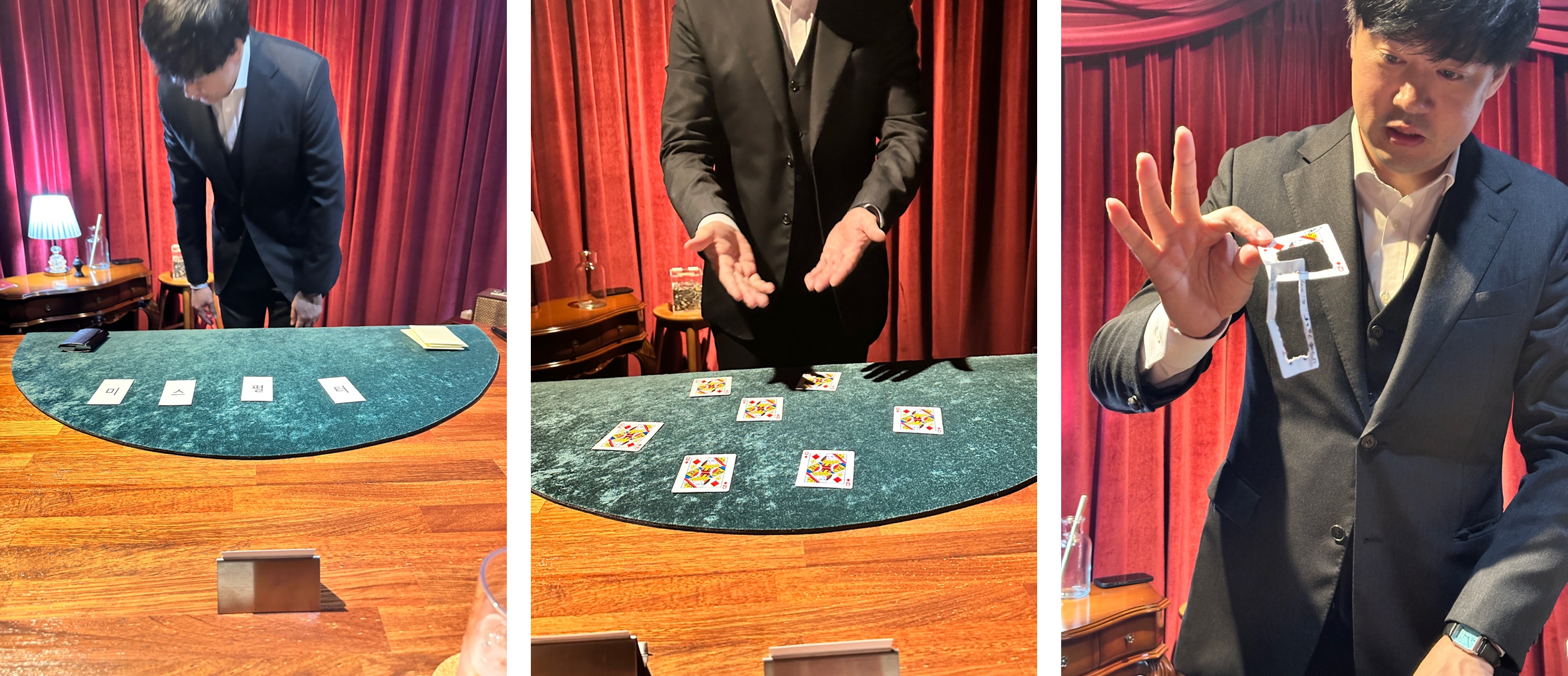 오늘 공연의 관객은 총 5명. 나 외에는 커플 한 쌍 / 10년지기 친구라는 여성관객 2분이 관객으로 참여하였다. 한 가지 재밌던 점은 나 이외에는 모두 비마술인 관객이었다는거? 사실 대부분의 관객이 비마술인인게 당연하겠지만, 어째서인지 내가 그동안 본 공연은 거진 80%가 다 마술인 관객이었던 점을 생각하면 상당히 이례적인 일. 그동안 내가 본 공연들이 다 너무 매니아집중적인 공연은 아니었나라는 생각이 들던 포인트.