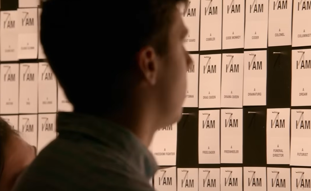 입장하기 전 한쪽 벽에는 수 많은 카드들이 걸려 있다. 'I AM ...' 이라는 문구로 시작하는 이 카드들은 할머니 / 꿈꾸는 사람 / 예술가 / 바텐더 / 뉴요커 / 리더 등 다양한 단어들이 연결되어 있다. 관객들은 이 카드들 중 하나씩 가지고 입장하며, 카드를 둘로 나눠 한쪽은 무대 앞 탁자에 놓고 한쪽은 자신이 보관하게 된다.