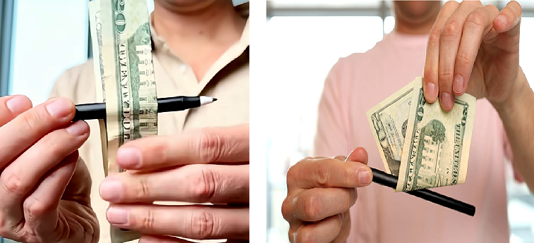 지폐를 통과하는 펜마술! 그런데 옆면으로도 통과 가능!