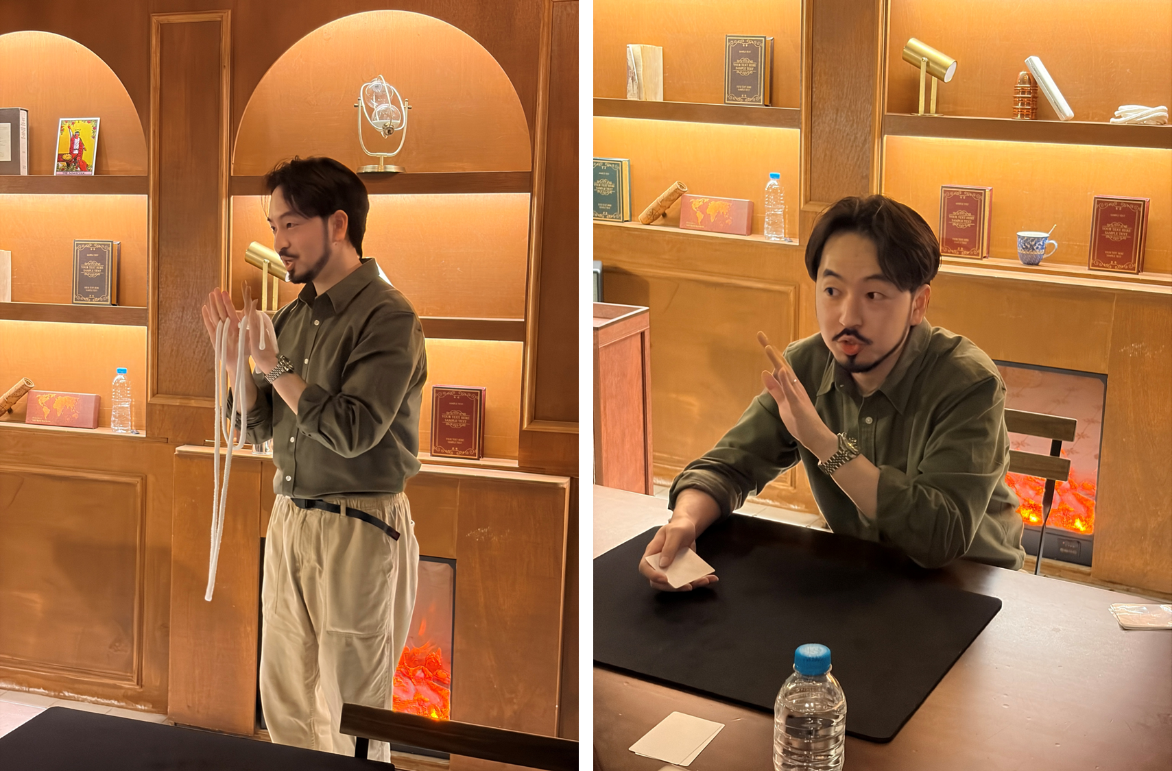 거장 멘탈리스트이신만큼 빌렛 루틴 / 북테스트 / 쿠로스케 등 멘탈마술들을 퍼포밍하셨다. 내가 감히 평가할수 있는 분은 아니지만, 수업 때나 개인 공연때도 느꼈듯 '정말로 불가능해보이는 일'과 '극도로 발달된 인간의 영역으로 충분히 가능한 일' 사이의 어딘가를 잘 조절하여 연출하시는 RYO 마술사님의 능력은 언제나 리스펙... 특히 웃스갯소리로 오늘 <무한 마술 지옥> 중 '지옥' 파트를 맡으셨다고 하셨는데, 쿠로스케 연출을 보면서 '대체 어디까지가 연기고 어디까지가 진짜란 말인가...!'라는 충격의 지옥에 빠지게 만들기도 하셨다. 내년에 서울 올라가면 다시 수업 듣고 싶어진다...
