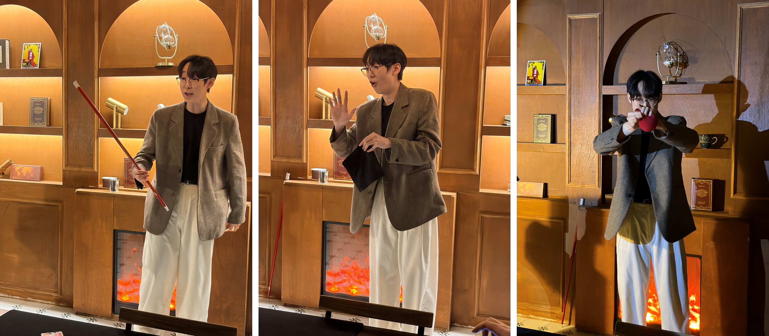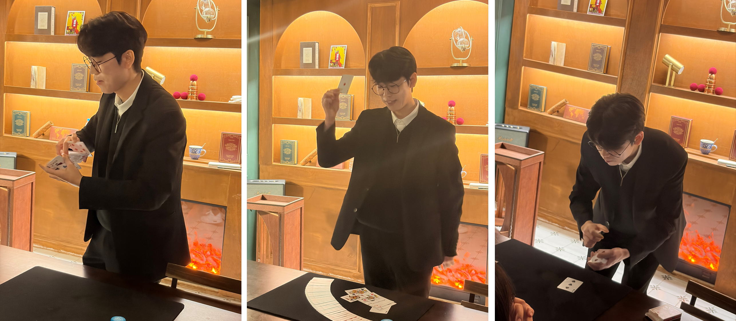오늘 공연에는 총 10명의 관객이 참여하였고, 무대 사이즈와 관객수에 맞춰 대부분의 공연 액트는 클로즈업-팔러 사이즈로 진행되었다. 한가지 재밌는 점은 관객 중 1분을 제외하면 마술인이었다는 것?(사실 비마술인이 무한 마술 지옥이란 공연을 신청하는 것이 더 신기한거 같기도 하고) 대부분 어디선가 뵌적 있던 분들이라는게 인상적이던 포인트.