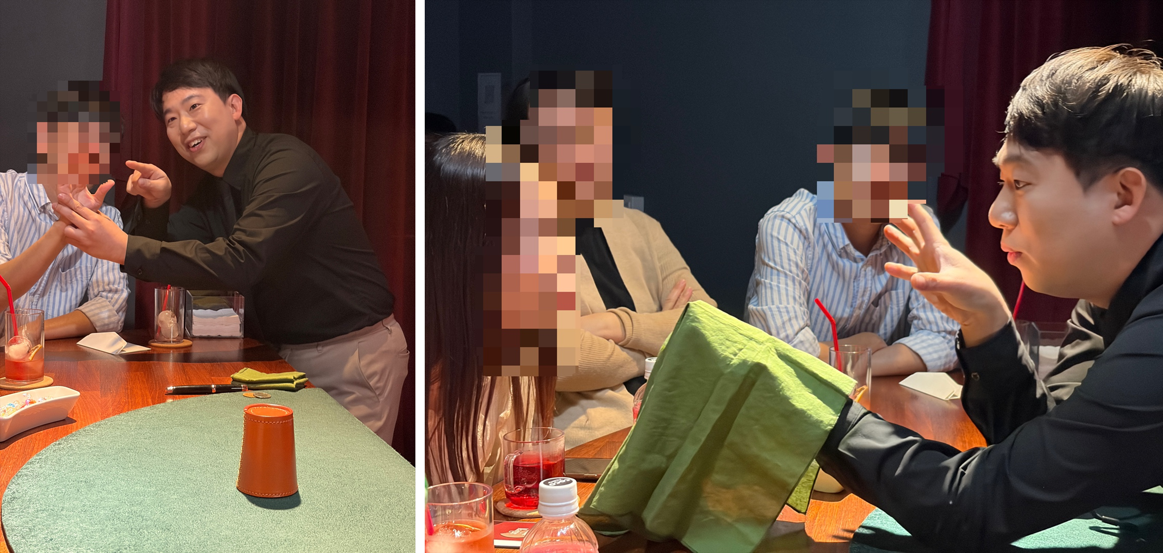 오늘 공연은 단 6명의 관객을 대상으로 진행되는 소규모 클로즈업 공연이었다. 나를 제외한 관객은 부부 한 쌍과 한국어 선생-제자 관계인 일본인 관객 두 명, 그리고 그들을 인솔한 한국인 선생님으로 구성되어 있었다. 구성만 보아도 짐작할 수 있듯, 지난번 ‘Trick’ 공연과 마찬가지로 이번 역시 나를 제외한 모든 관객이 비마술인이었다. 사실 그동안 내가 관람해온 마술 공연들, 특히 클로즈업이나 팔러 규모의 공연에서는 관객의 상당수가 마술인이었던 경우가 많았기에, 오히려 이번과 같은 환경이 꽤 오랜만에 느껴지는 신선한 경험이었다.